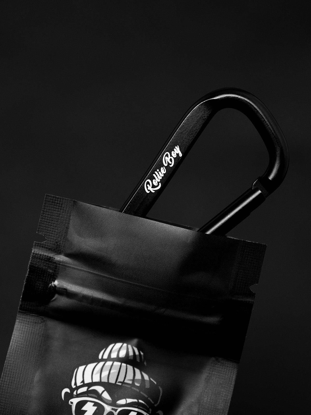 Either clip your Rollie Boy carabiner through the hole in your case to hang with you on the go, or place your empty Rollie Boy paper in the placeholder while you pour in your favorite ingredients.