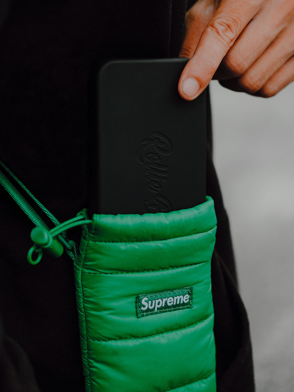 Either clip your Rollie Boy carabiner through the hole in your case to hang with you on the go, or place your empty Rollie Boy paper in the placeholder while you pour in your favorite ingredients.
